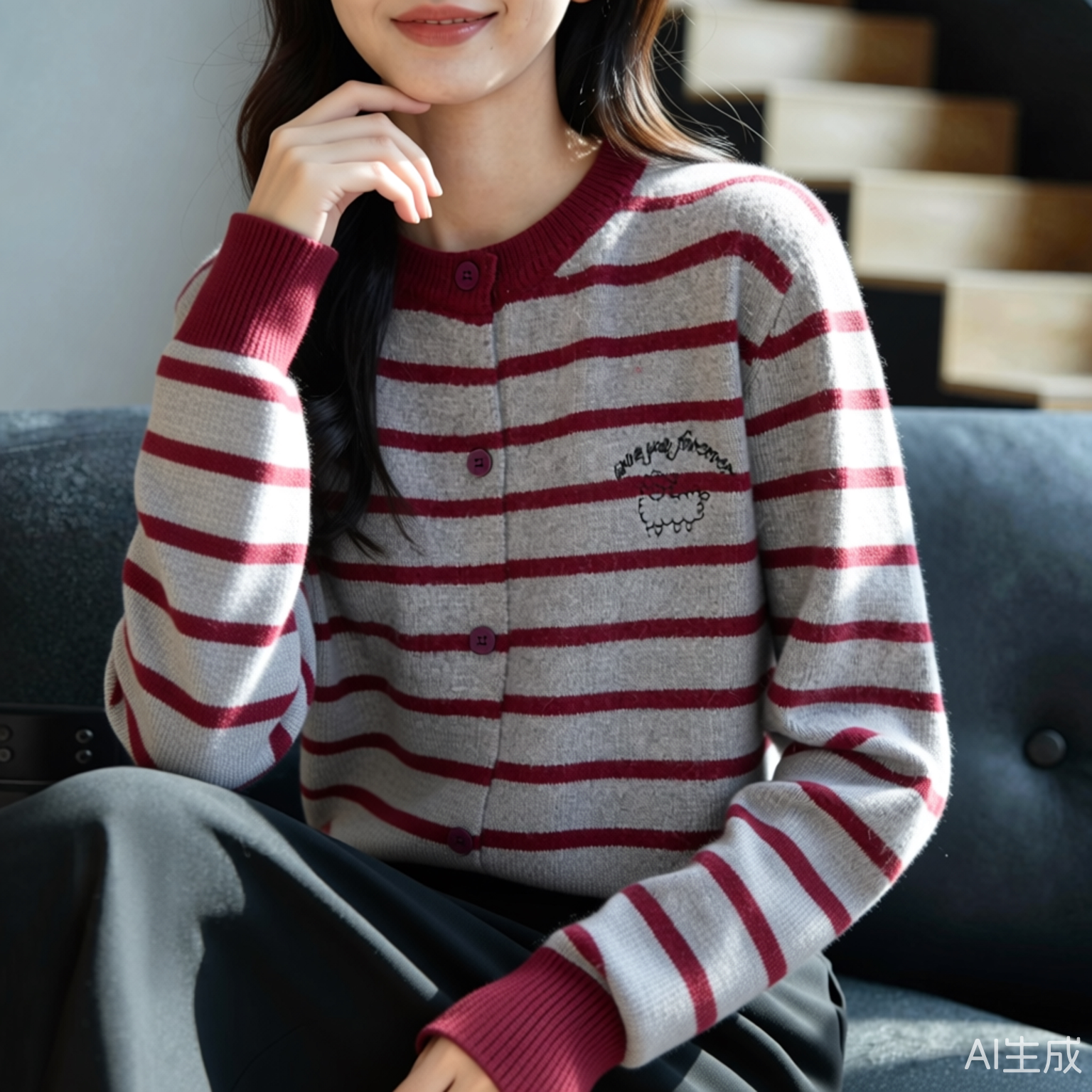 aaaaxbbb 风 羊毛针织开衫 外套V领吊带上衣纽扣圆领两件套 春禾季