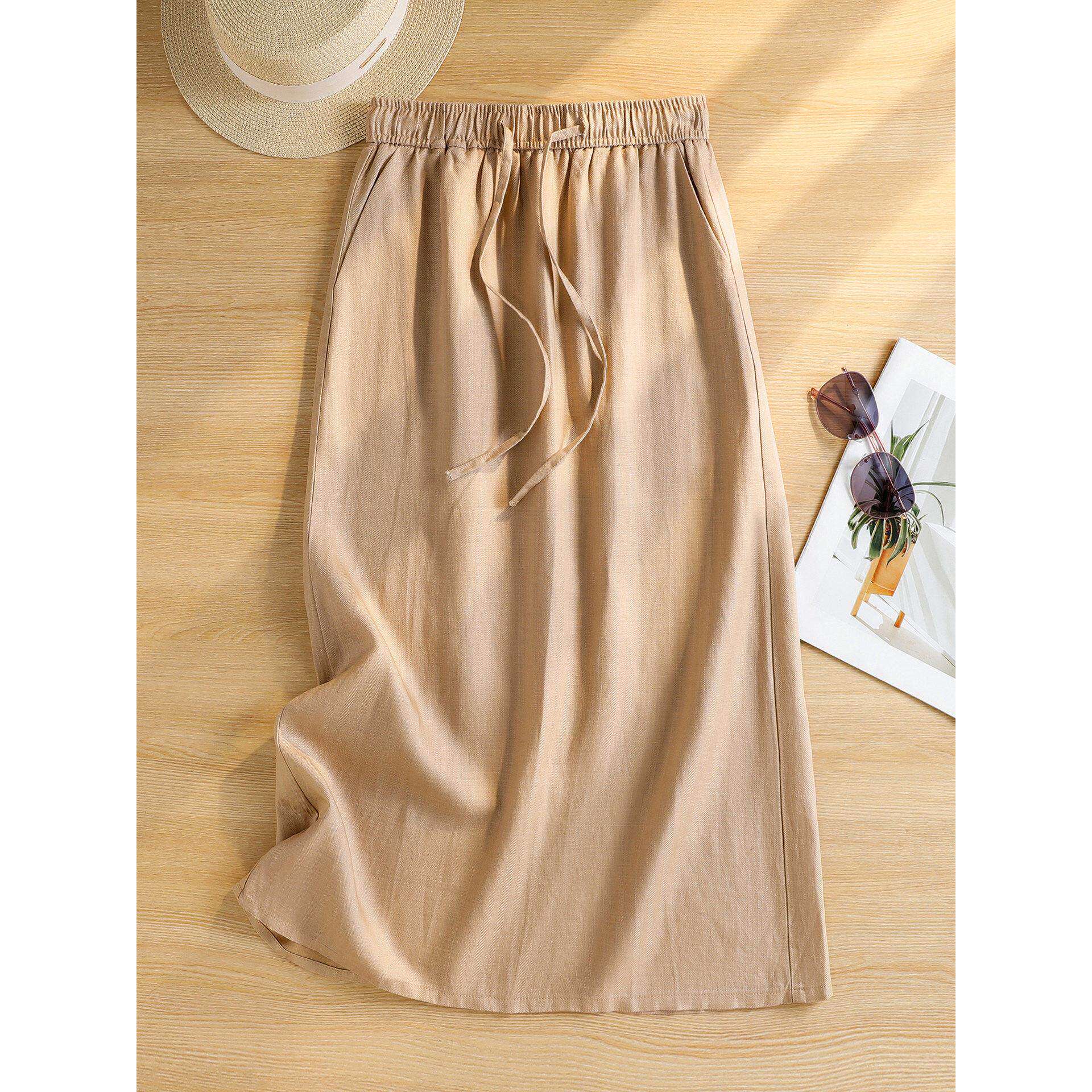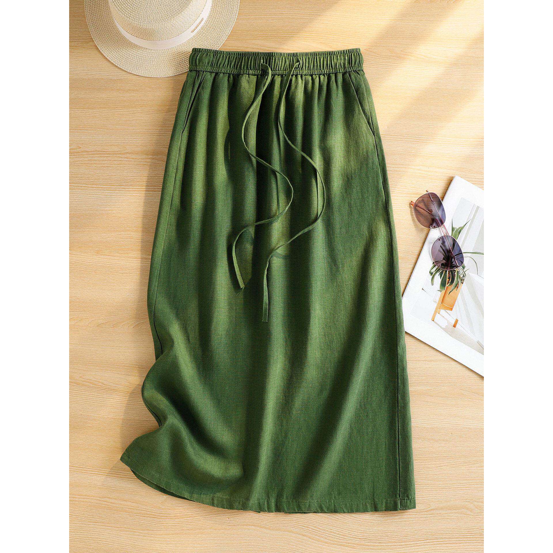 文艺气质新中式 汉服a字裙长裙 双层仿棉麻半身裙春秋女中长款 1725