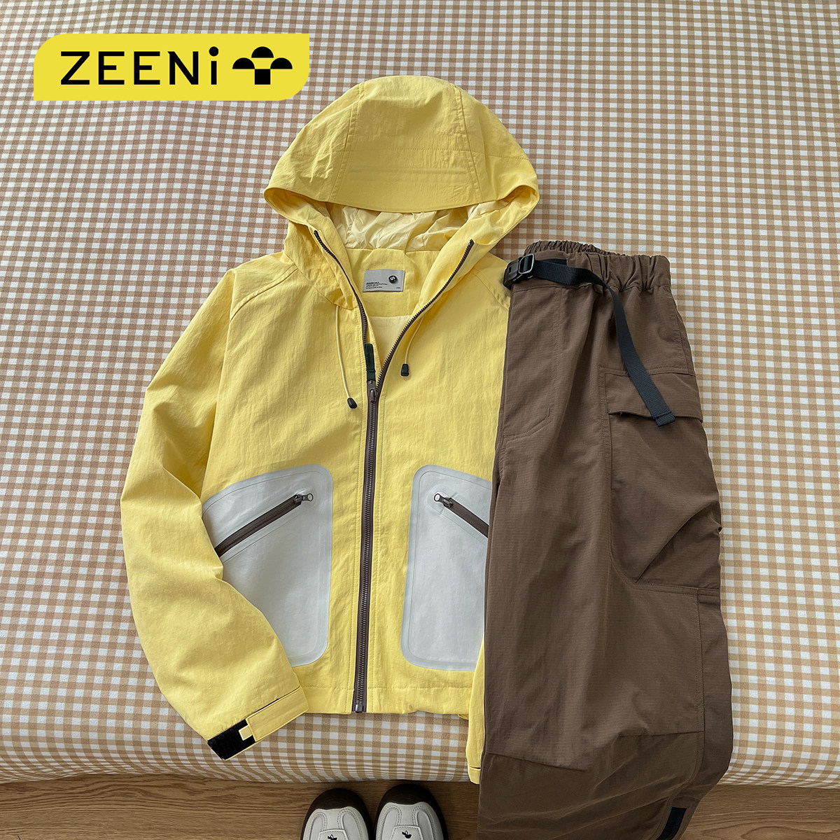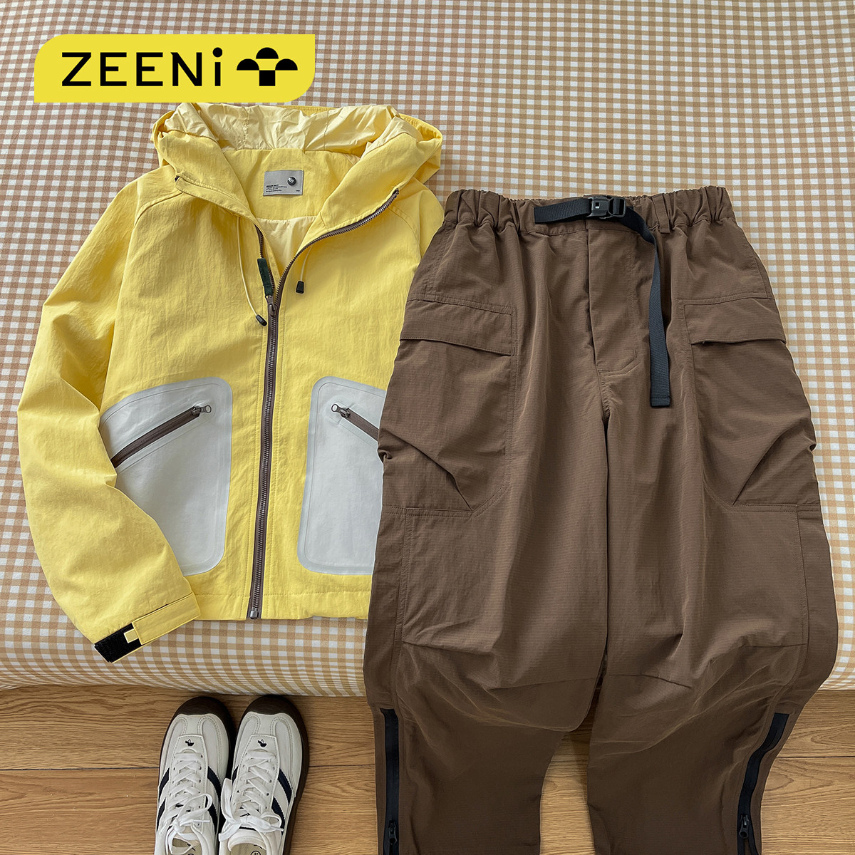 ZEENI 户外多巴胺运动穿搭春季 套装 防泼拒水连帽速干外套女休闲裤由