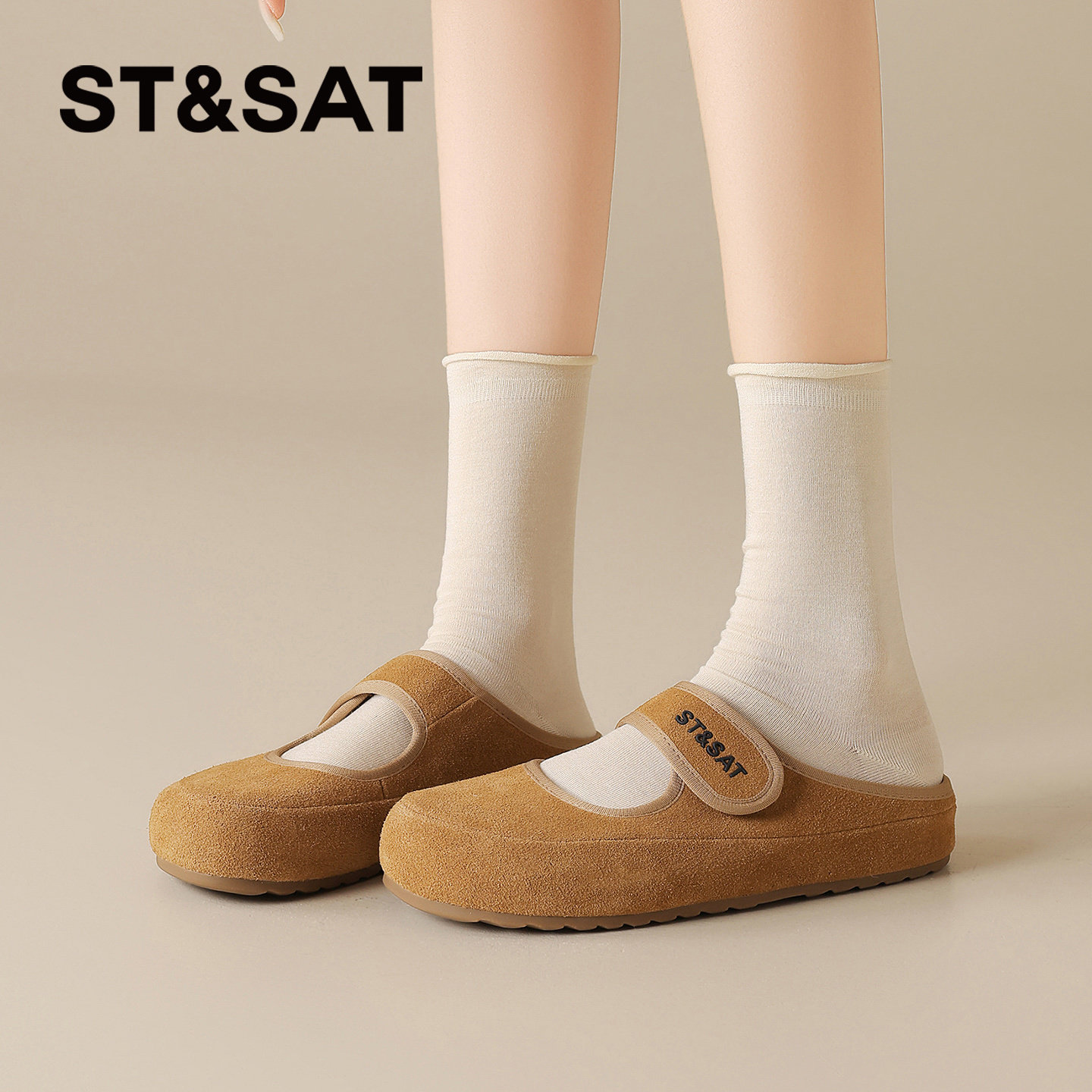 魔术贴浅口包头半拖鞋 女SSE1110CD0 星期六春秋厚底勃肯鞋 St&Sat