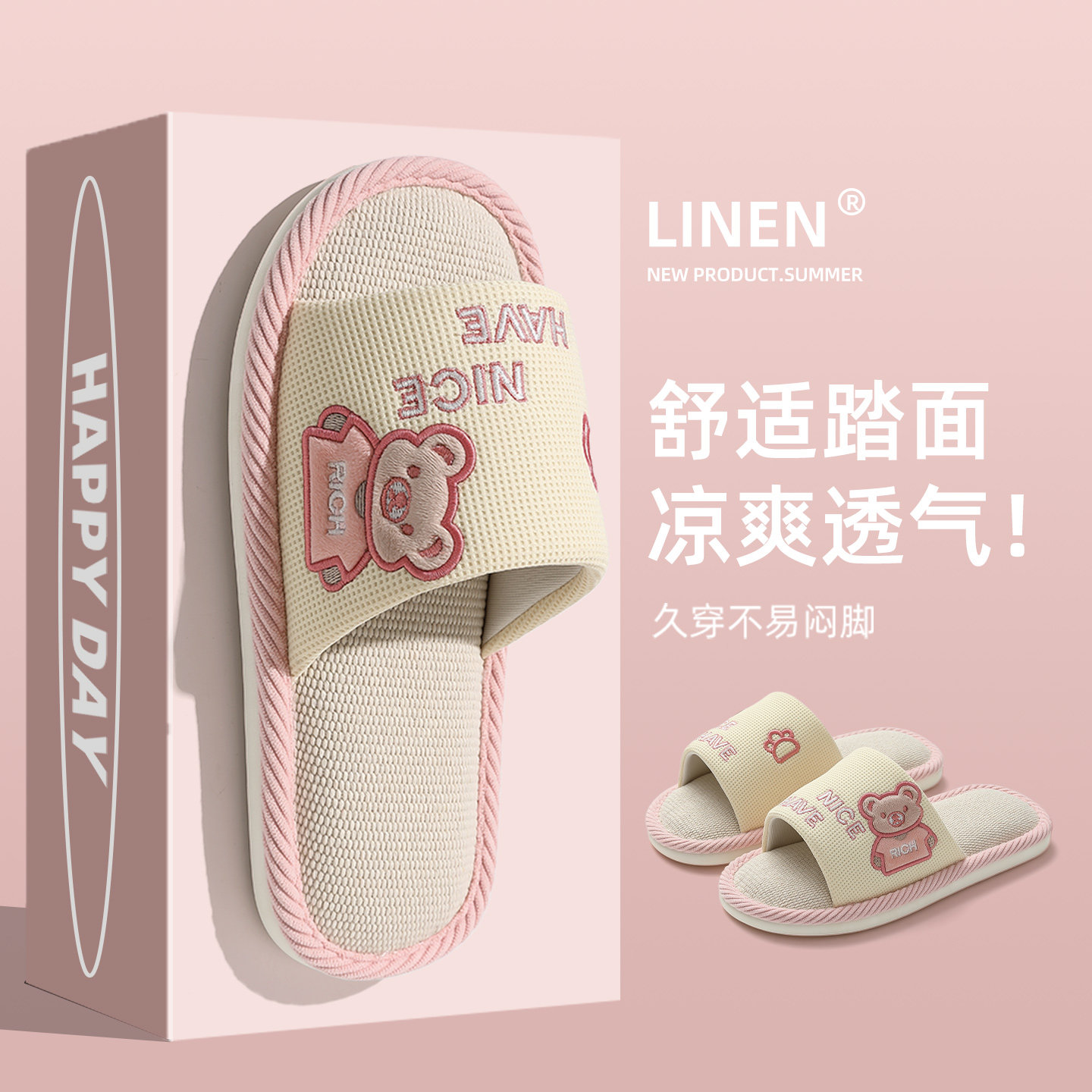 男士 利达妮四季 夏室内家居家卡通防滑亚麻凉拖鞋 2026新款 拖鞋 女款