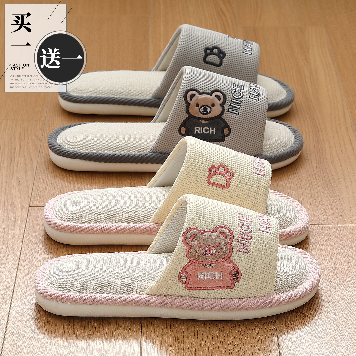 买1送1亚麻拖鞋 室内家居情侣一对静音防滑防臭四季 棉麻拖鞋 男 女款由