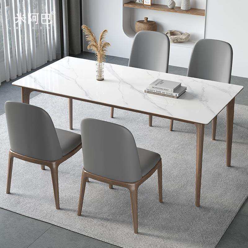 德利丰岩板餐桌实木白方蜡木胡家桃色现代简约B218用户型长形餐桌