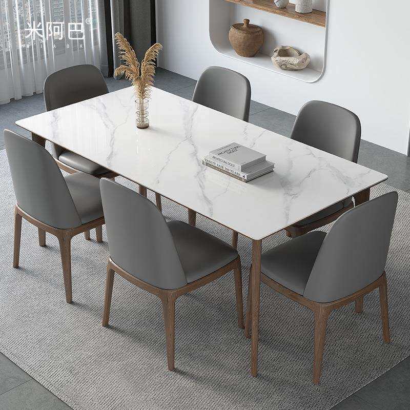 德利丰岩板餐桌实木白方蜡木胡家桃色现代简约B218用户型长形餐桌由