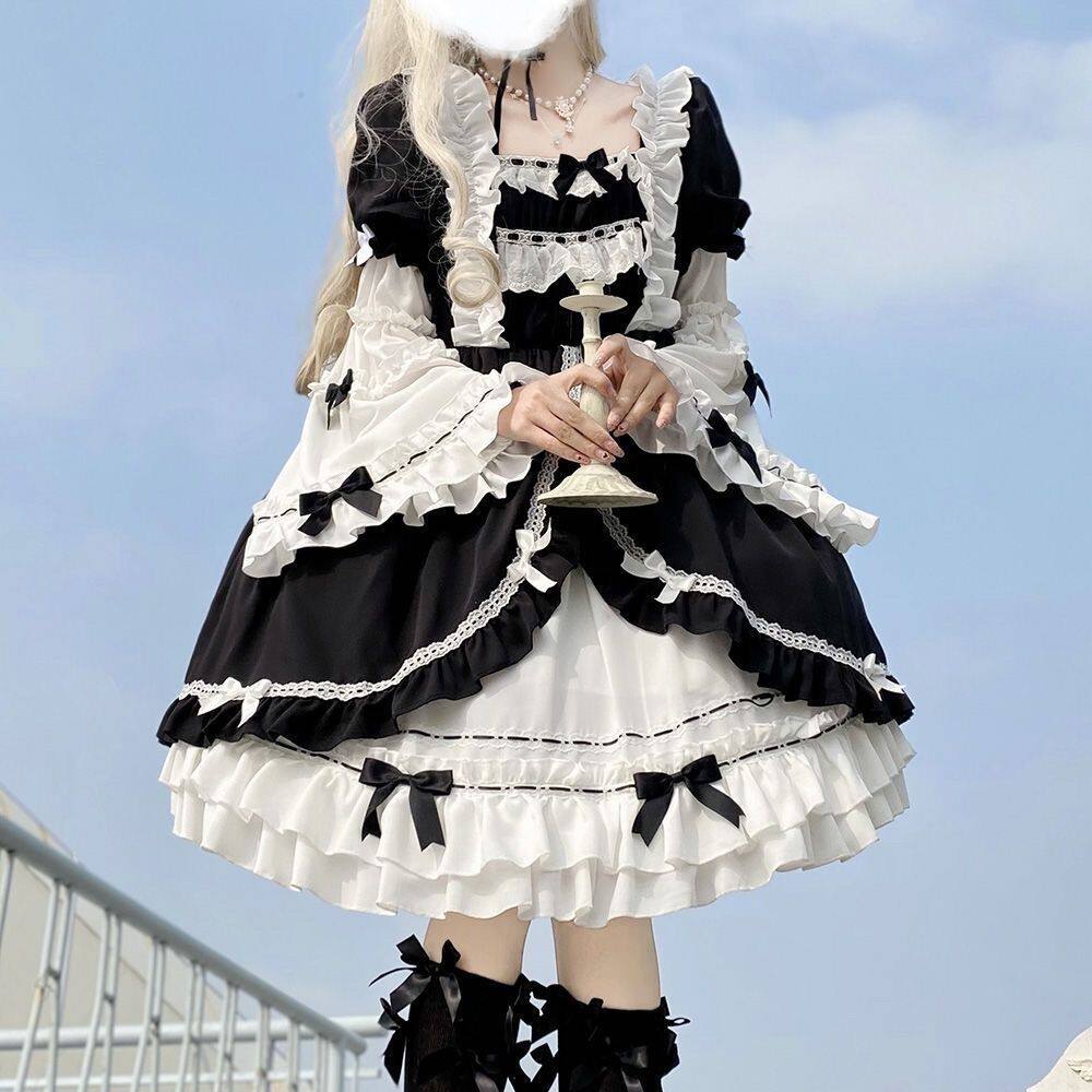 女仆装 围裙优雅 Cosplay裙甜美可爱洛丽塔Lolita软妹收腰连衣裙袖
