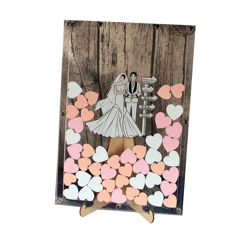 送卡通头像创意结婚礼庆高档透明签到框爱心木片签名册簿本台定制由