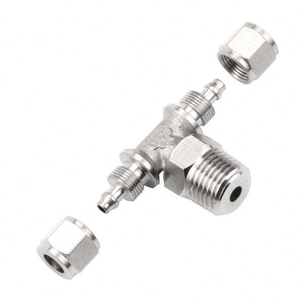 翎翔气动接头快拧PB 03铜镀镍接头 T型三通螺纹PB6