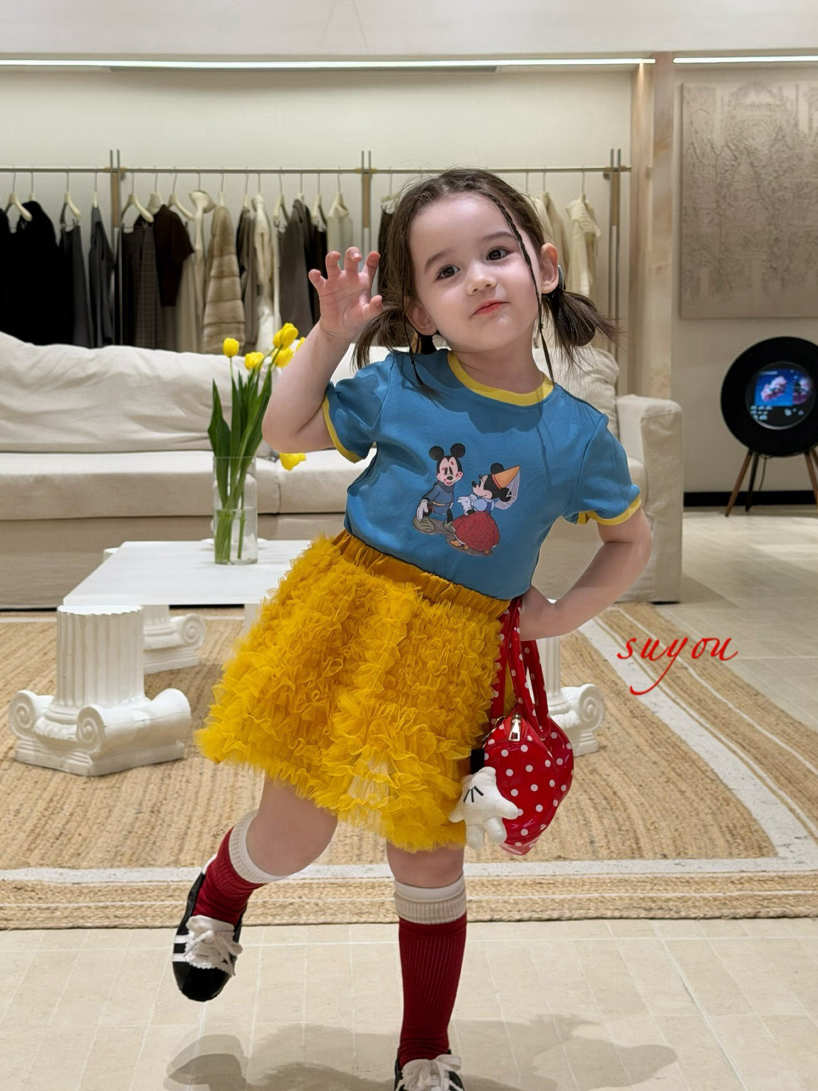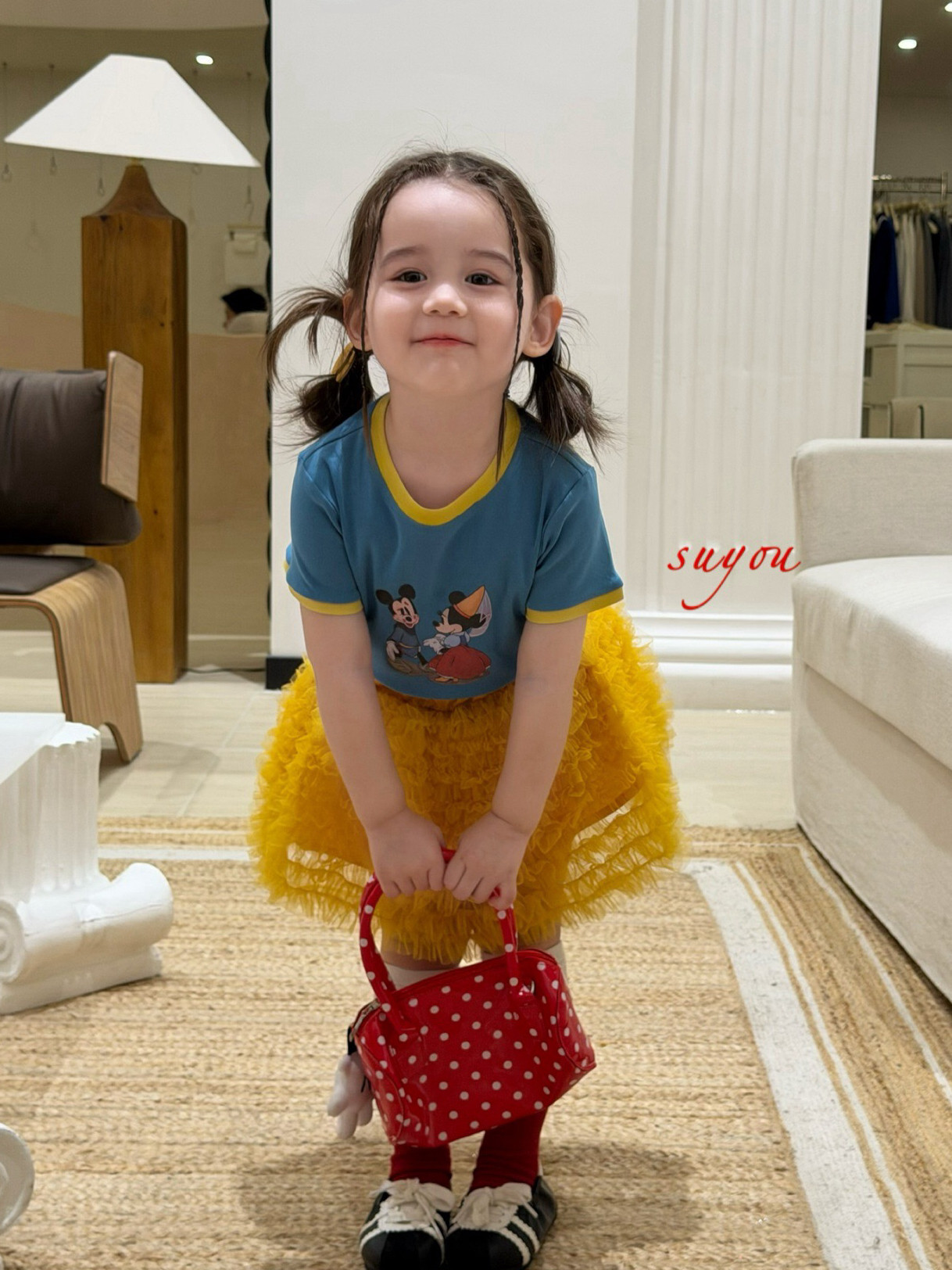 女童小童韩版 凡妈童装 2026夏季 新款 T恤网纱蓬蓬纱裙半裙 米奇修身由