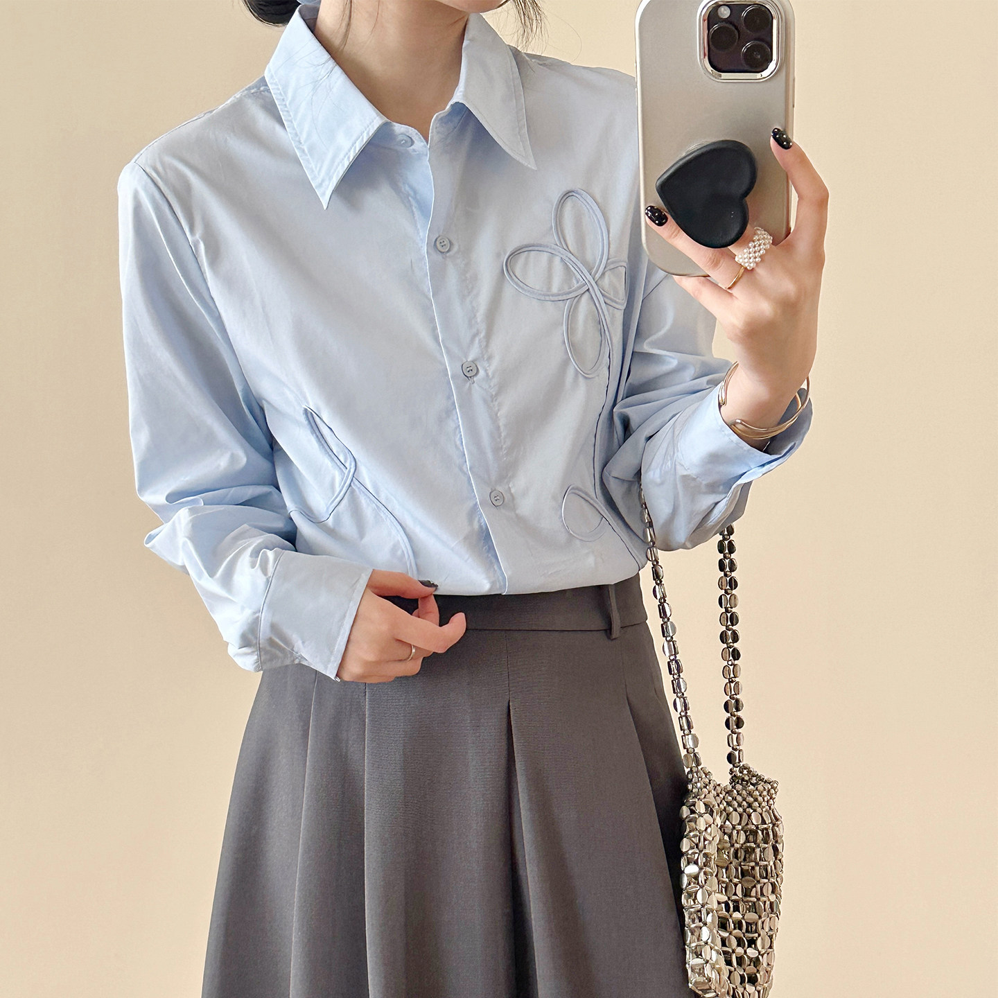 立体花朵刺绣白衬衫 女休闲通勤百搭气质上衣 法式 糖安妮2026春新款