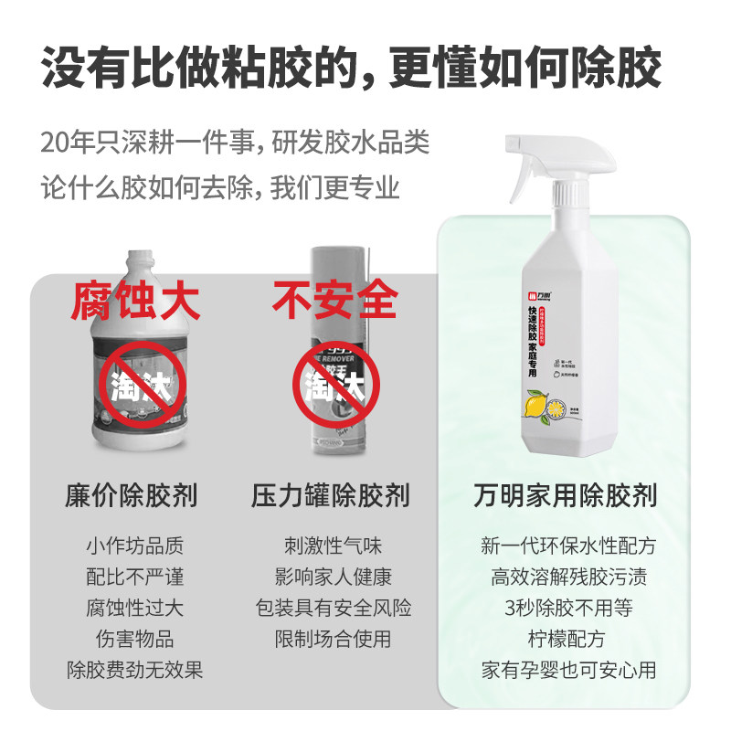 为您提供商品万明除胶剂 开荒保洁清除剂瓷砖 家用万能双面胶清除强力去胶神器的详细介绍,