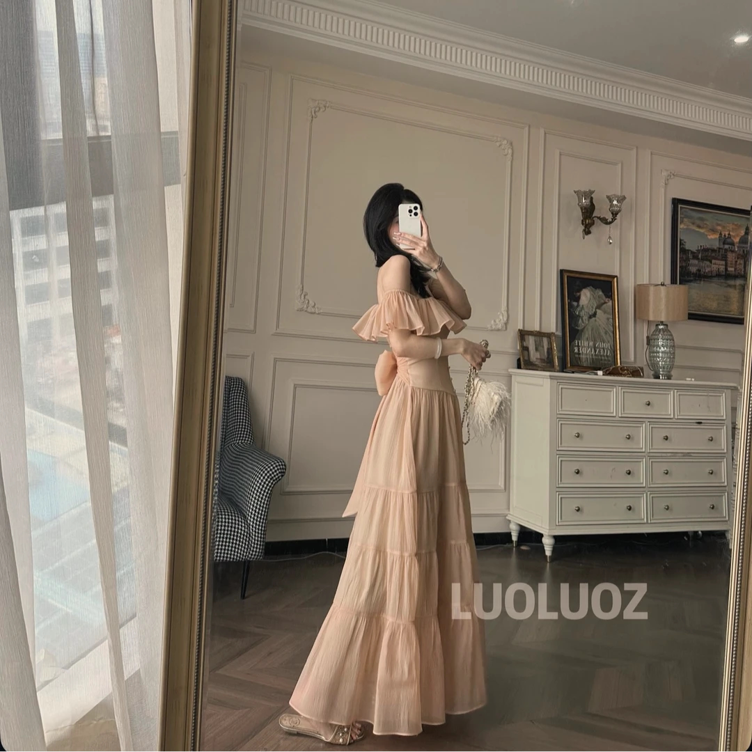 LUOLUOZ 法式 收腰蝴蝶结设计荷叶边时尚 连衣裙JF1240 浪漫假日