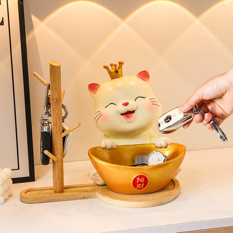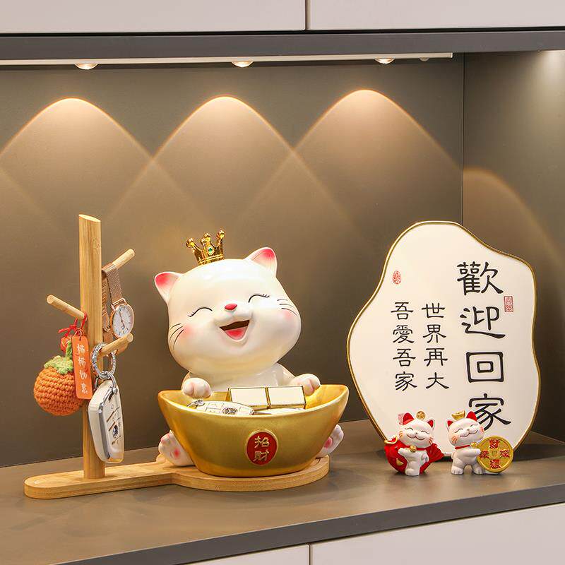 猫入户钥匙收纳玄关摆件门口鞋 饰品乔迁新居礼品 柜客厅家居装