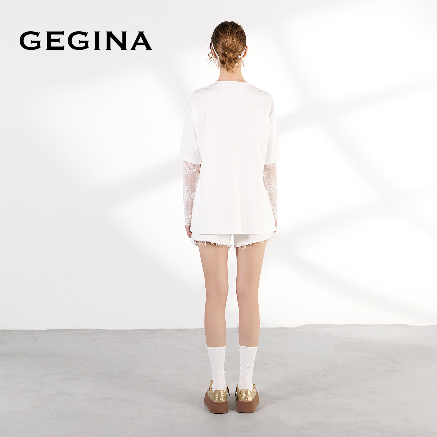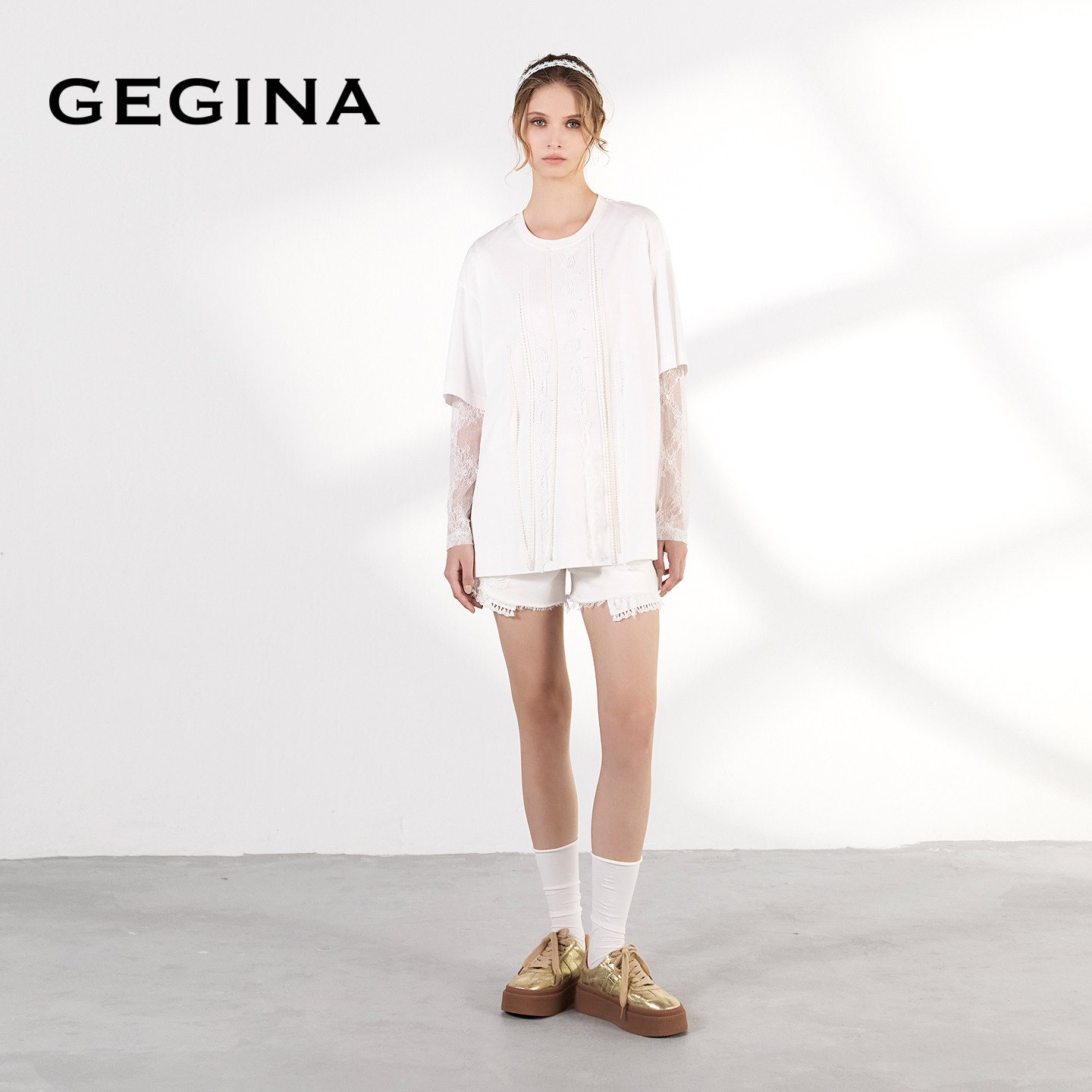 为您提供商品纯棉圆领T恤女蕾丝假两件时髦优雅上衣 GEGINA吉吉娜2026早春新品的详细介绍,