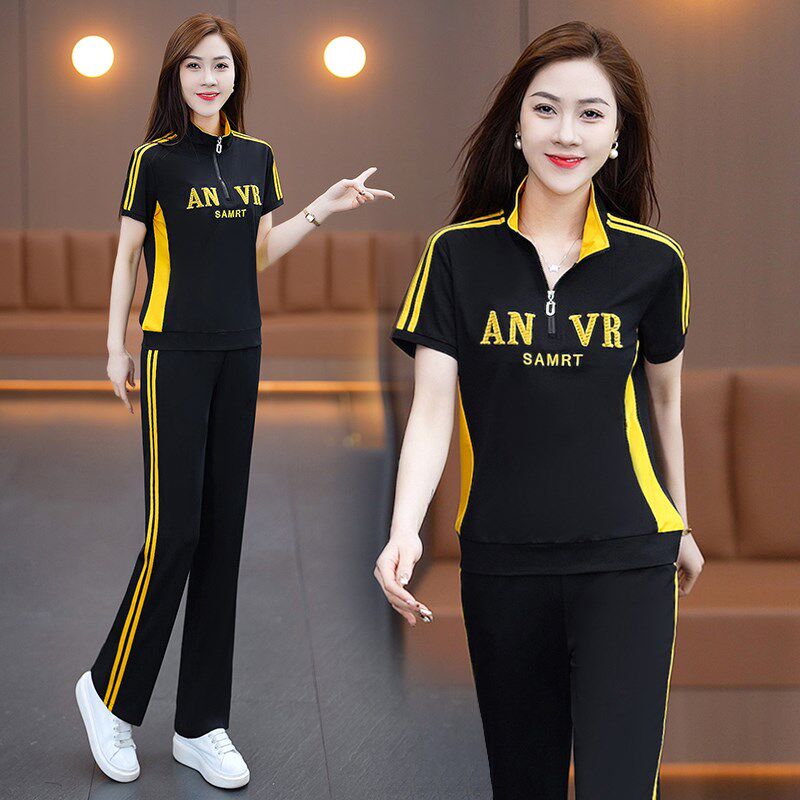 新款 时尚 运动套装 女2024夏季 洋气减龄跑步服休闲显瘦两件套潮 韩版