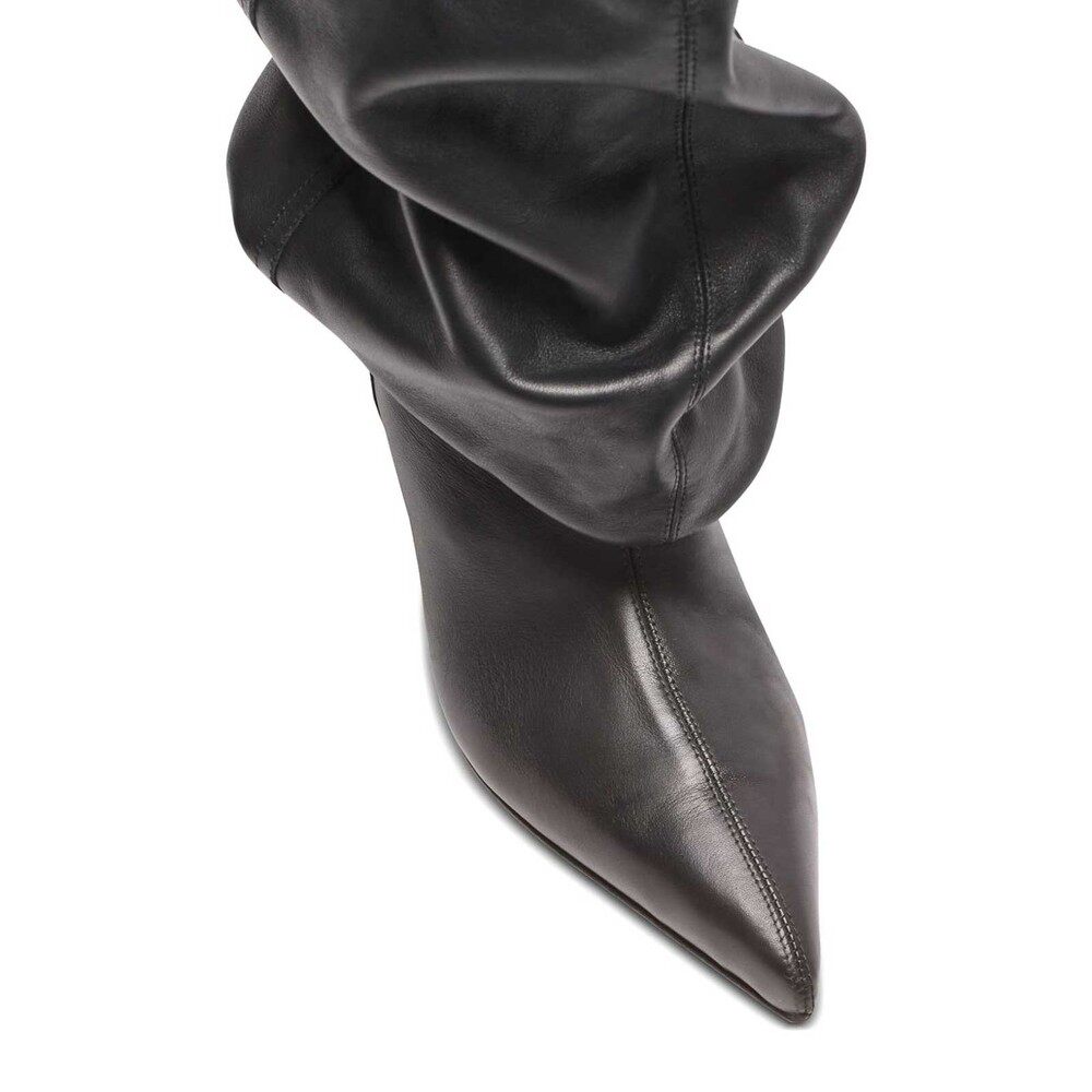 靴 Mollynne原创设计短靴黑色尖头中筒瘦瘦靴女朋克风堆堆靴子时装