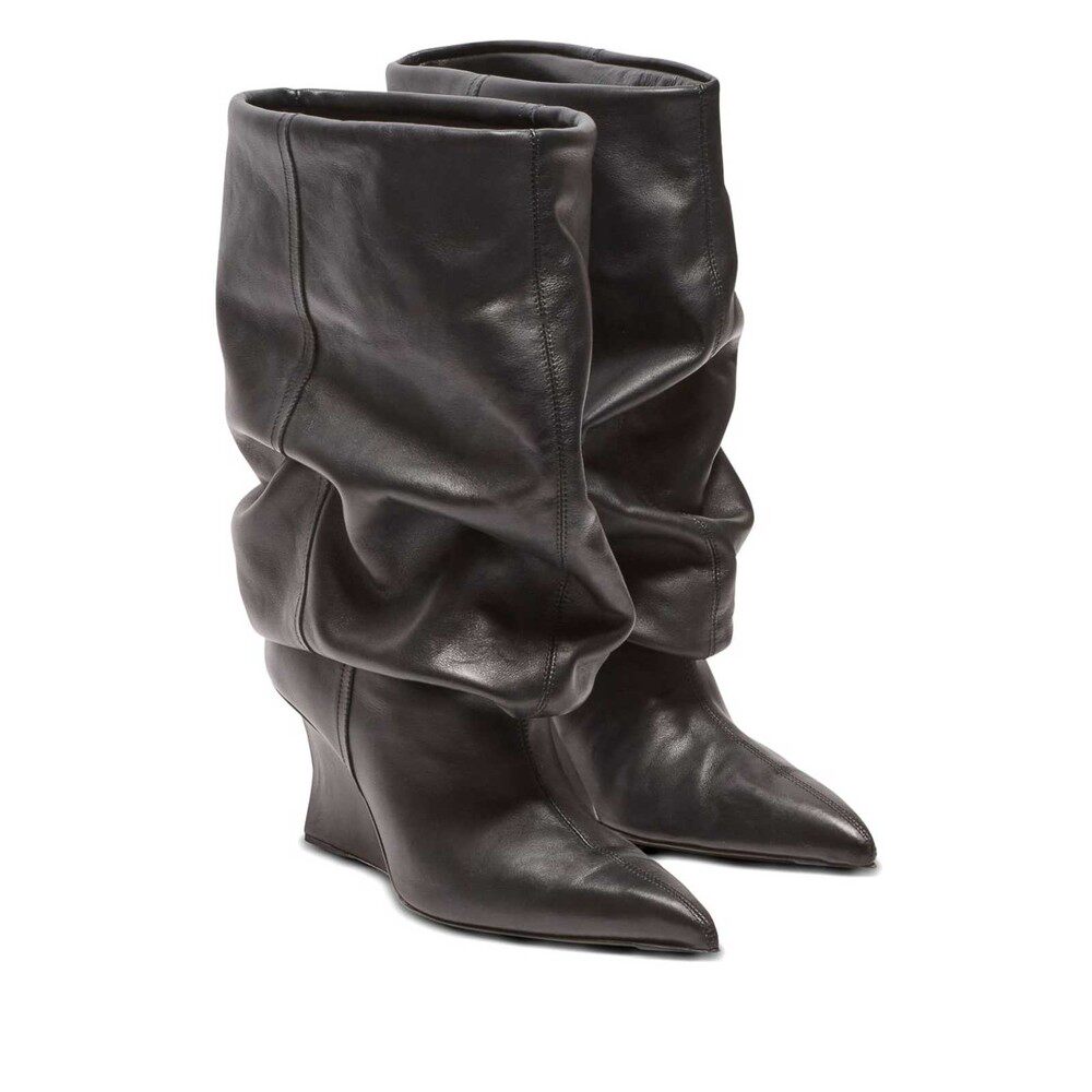 纽扣拼接两穿堆堆靴2026春夏新款 靴女尖头细跟长筒靴 辣妹高跟时装