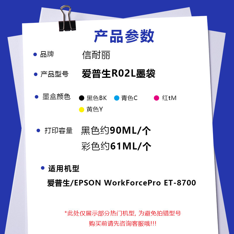 为您提供商品8700喷墨打印机墨盒墨水袋 Pro 适用爱普生R02L墨袋WorkForce的详细介绍,