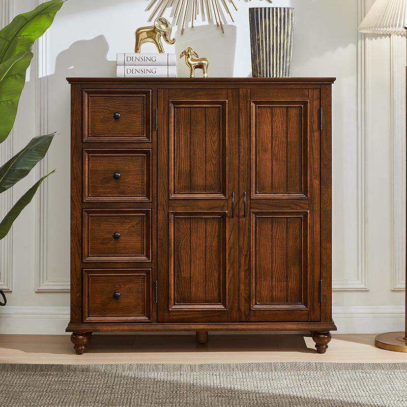 实木六斗柜卧室储物柜子主卧多功能收纳带门衣柜H273 瑞福祥美式