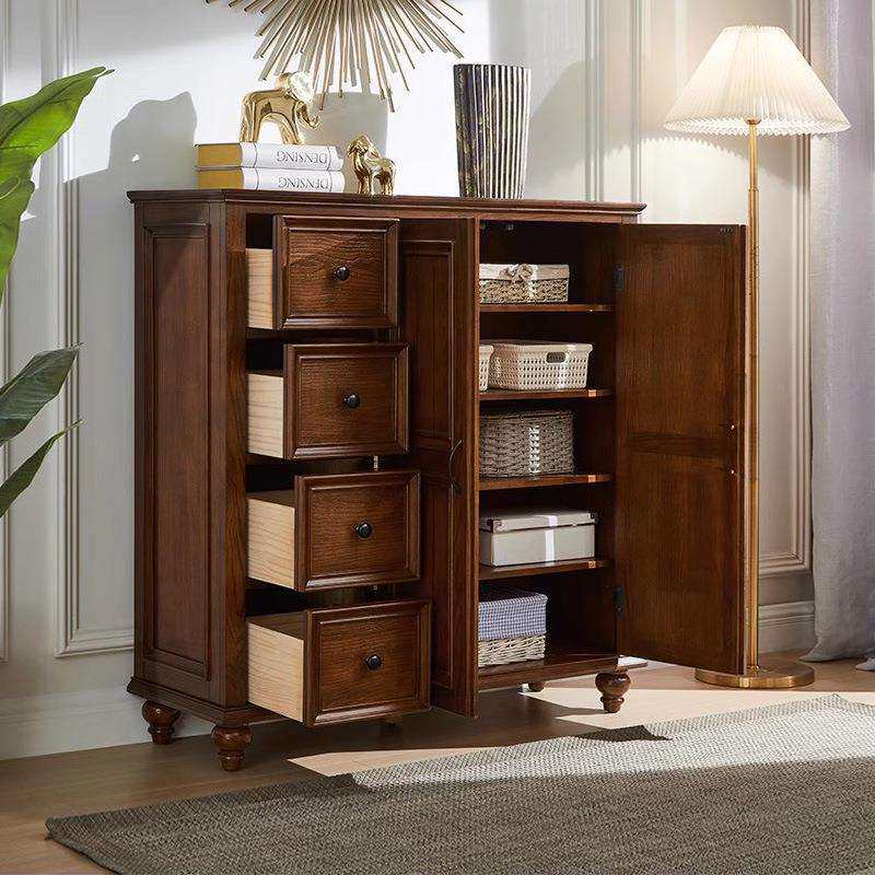 实木六斗柜卧室储物柜子主卧多功能收纳带门衣柜H273 瑞福祥美式由