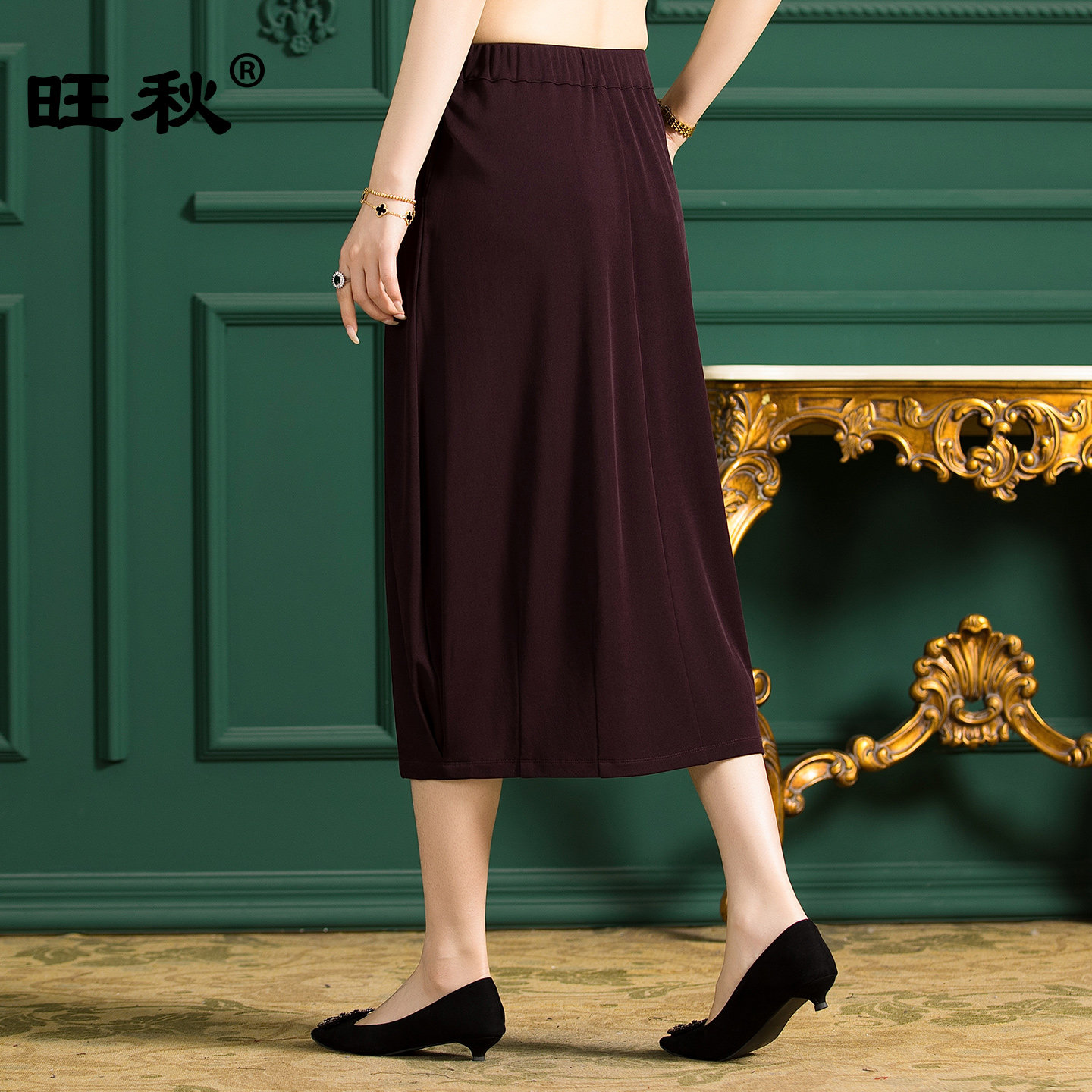 为您提供商品纯色松紧腰裙垂感A字裙 旺秋高端桑蚕丝220克真丝加捻半身裙女H版的详细介绍,