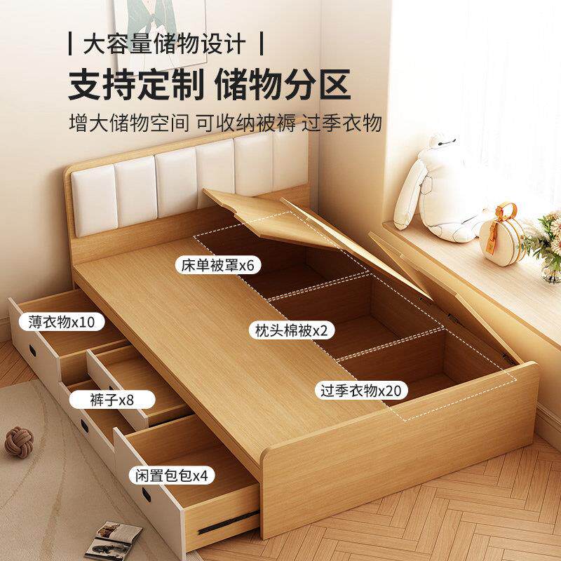 现代简约实木床1.8米主卧双人床1.5M单人经济型高箱储物大床