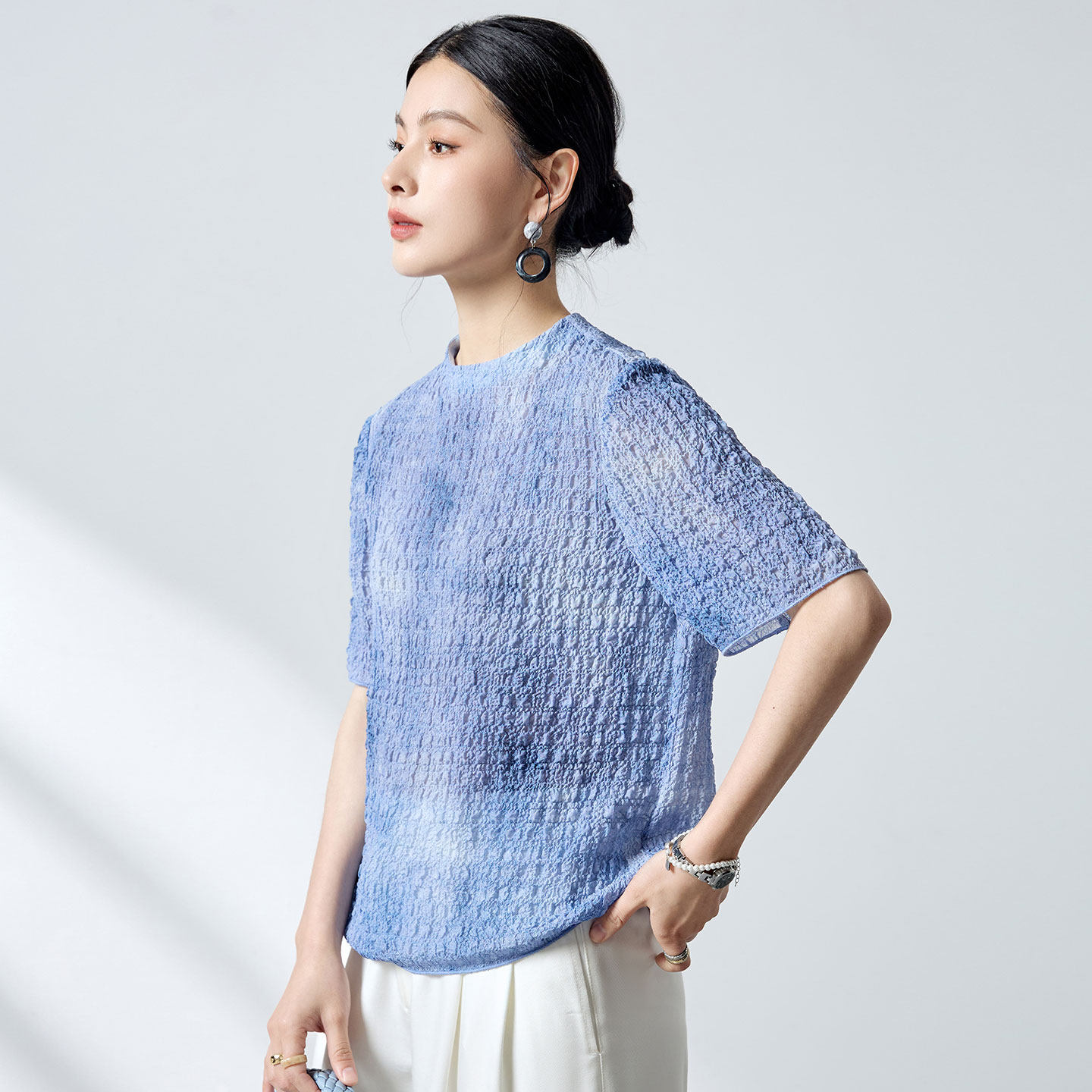 2026夏季 简约通勤风T恤女泡泡绉宽松五分袖 百搭气质减龄小衫 新款由