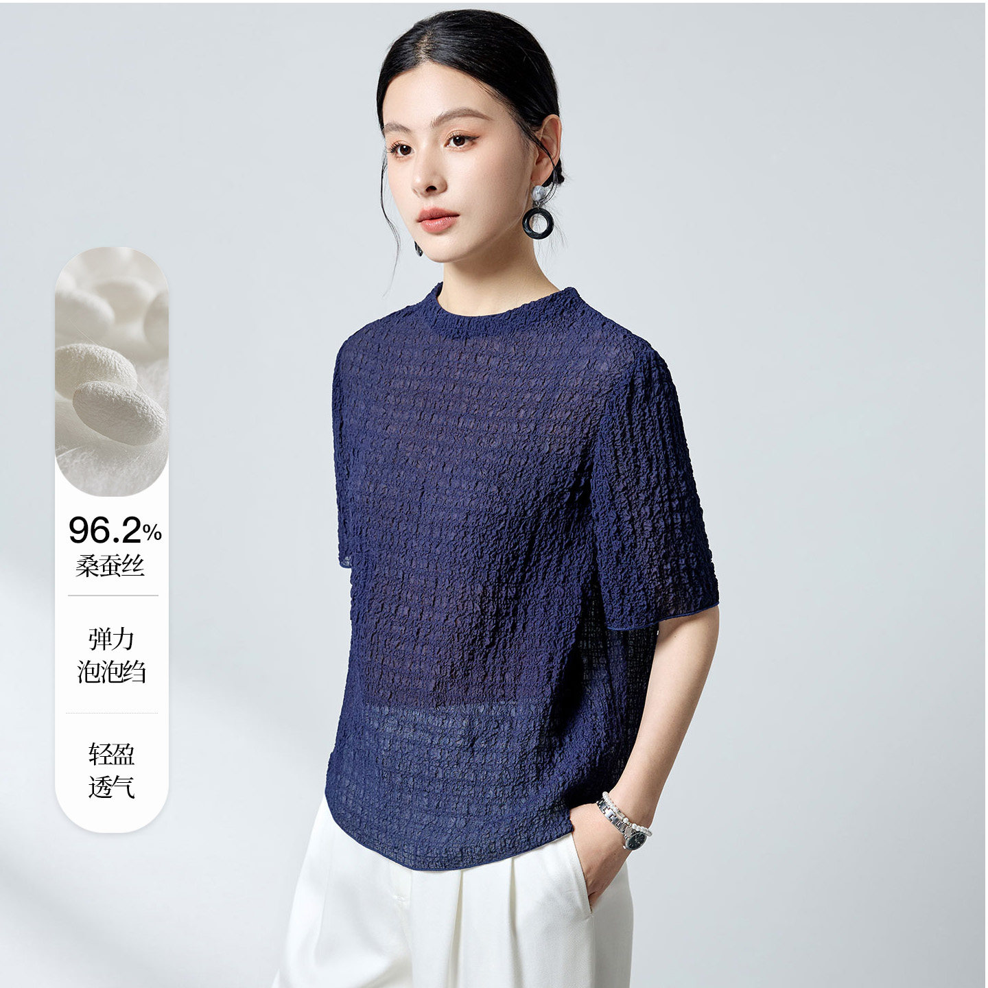2026夏季 简约通勤风T恤女泡泡绉宽松五分袖 百搭气质减龄小衫 新款