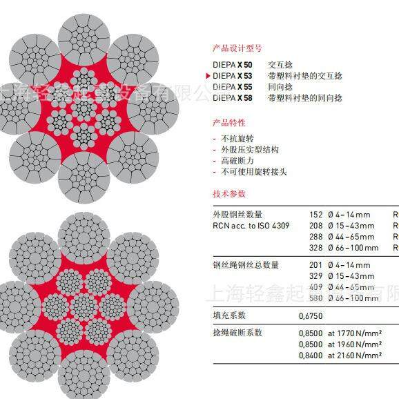 为您提供商品2160N 迪帕钢丝绳 D15mm 1960N X53系列 起重机钢丝绳 DIEPA的详细介绍,