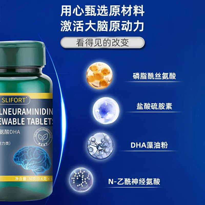 磷脂酰丝氨酸脑活素片WW2 乙酰神经氨酸DHA咀嚼片官方旗舰店正品由