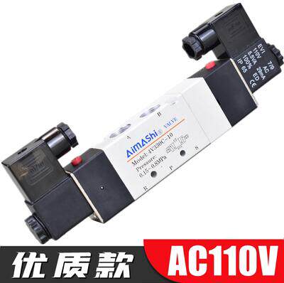 10气动换向阀气阀220V电磁控制阀24V中封型 三位五通电磁阀4V330C