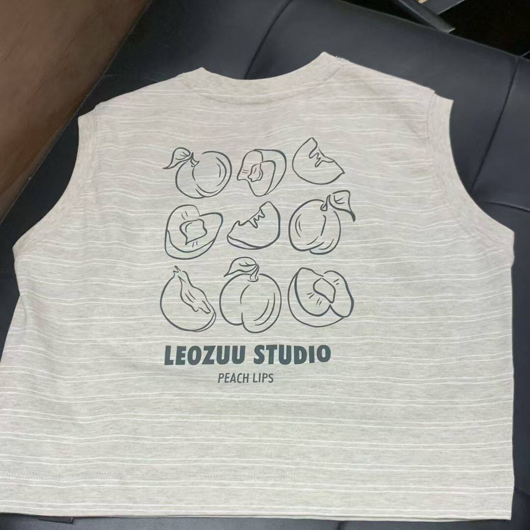 背后印花条纹套装 中小童软fufu无袖 舒适百搭 新款 夏季 上衣短裤 套装由