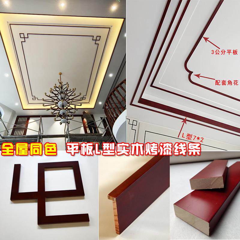 新中式 饰原木灯池阴角木线条 实木吊顶线条角花7字L型电视背景墙装由