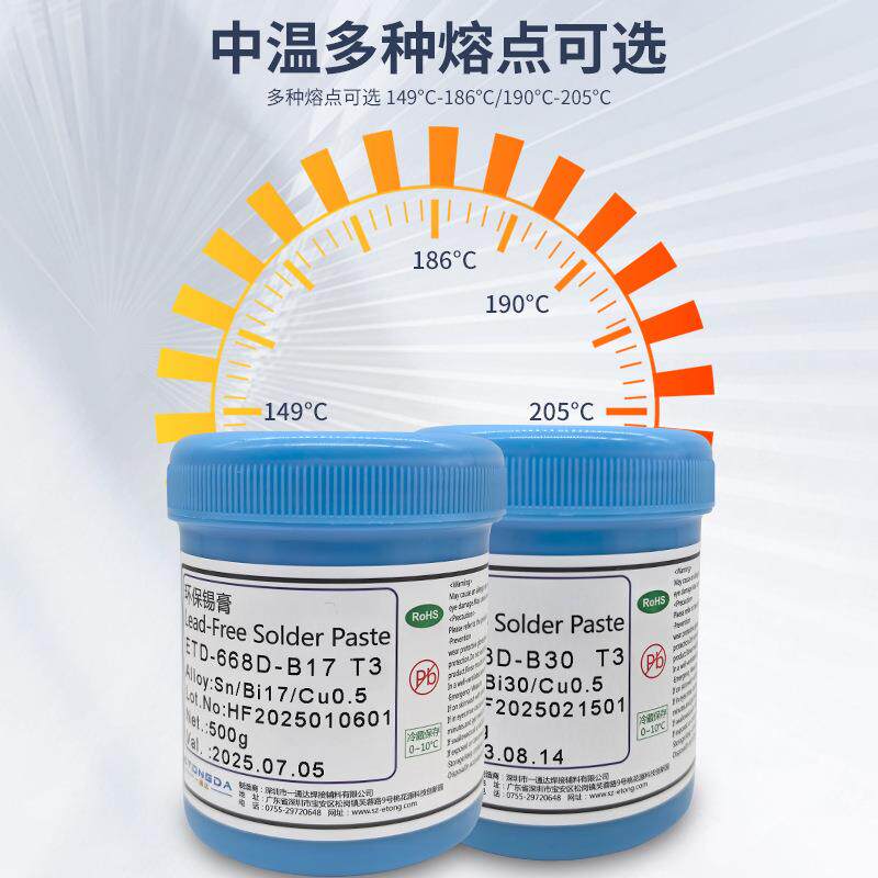 中温焊锡膏Sn69.5Bi30Cu0.5 中温锡膏Sn82.5Bi17Cu0.5强度高