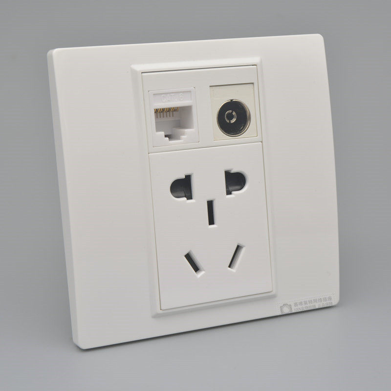 六类网络电型6视CA6千兆网线电脑V有线带五孔电源面板