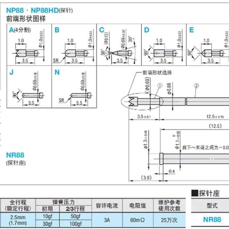 为您提供商品高品质NP88HD探针NP88 N探针座NR88硬质SK4镀铑的详细介绍,