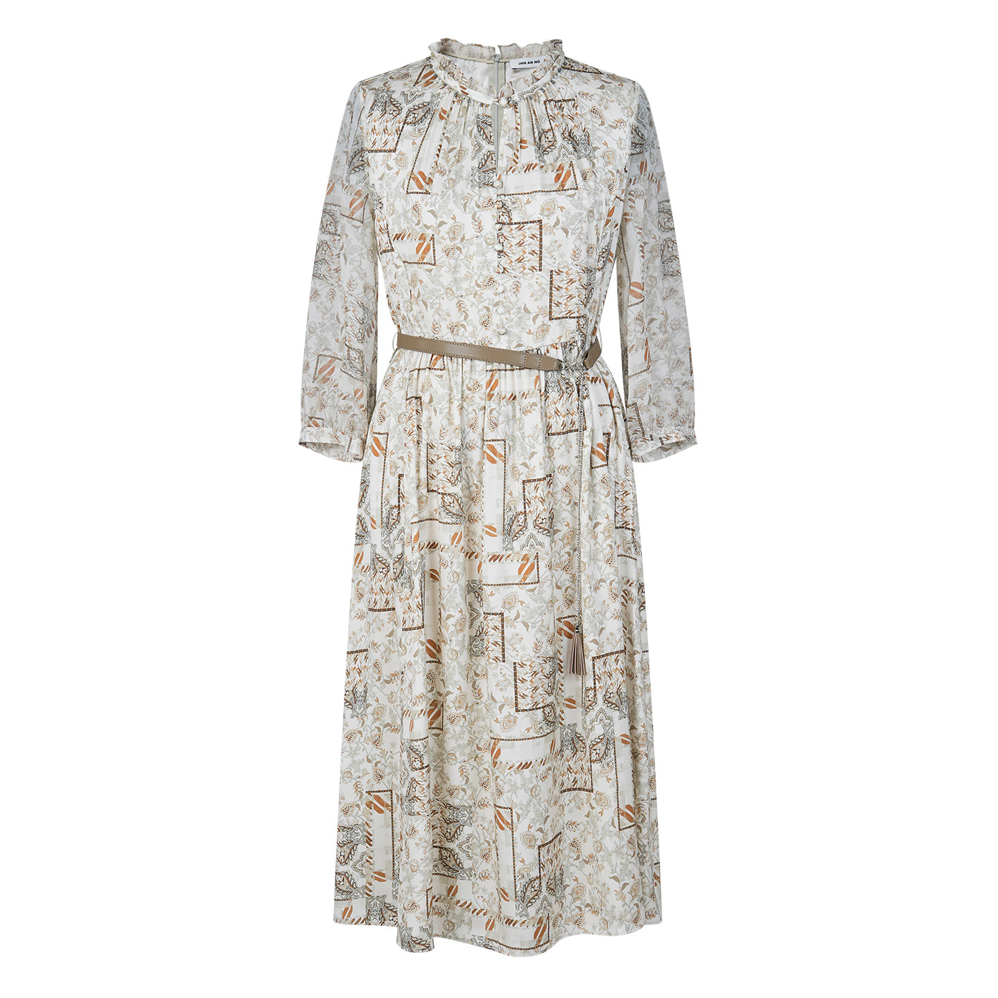 为您提供商品JAN NO简爱诺春夏新款 七分袖 复古真丝印花连衣裙J2610196LQ的详细介绍,