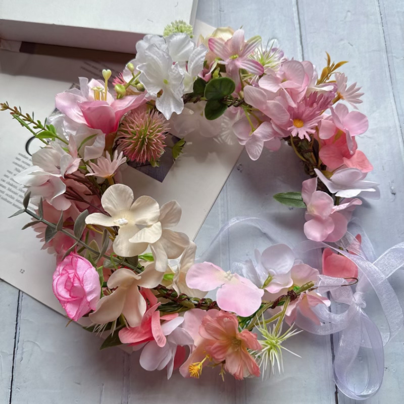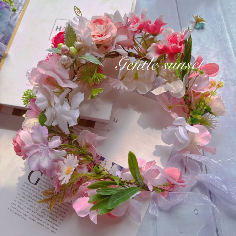 森系仙美花朵发饰 原创设计新娘头饰粉色大花朵花环甜美优雅韩式