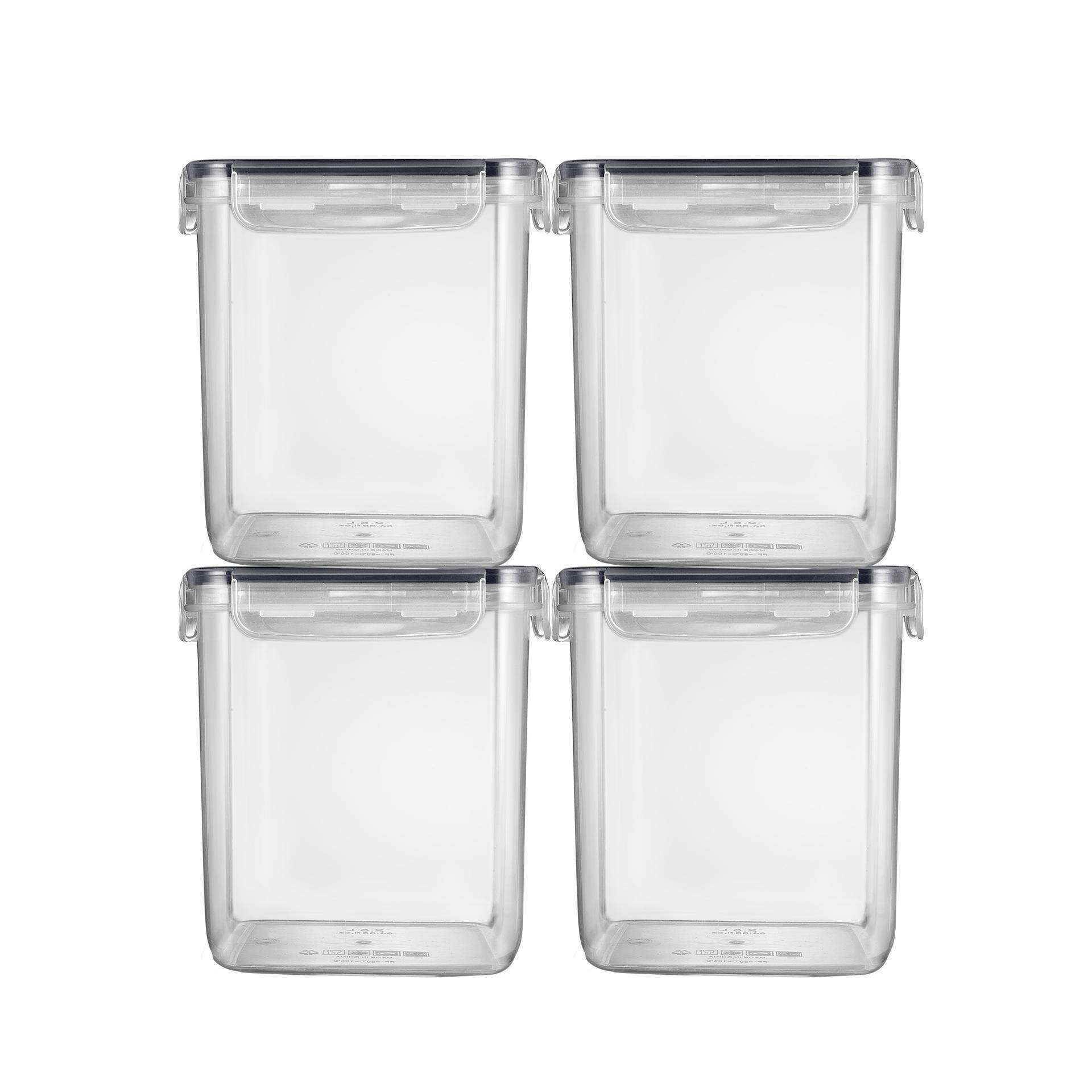正方形四件套密封盒塑料PP坚果谷物收纳储物罐套装 4大米储存 5.2L由