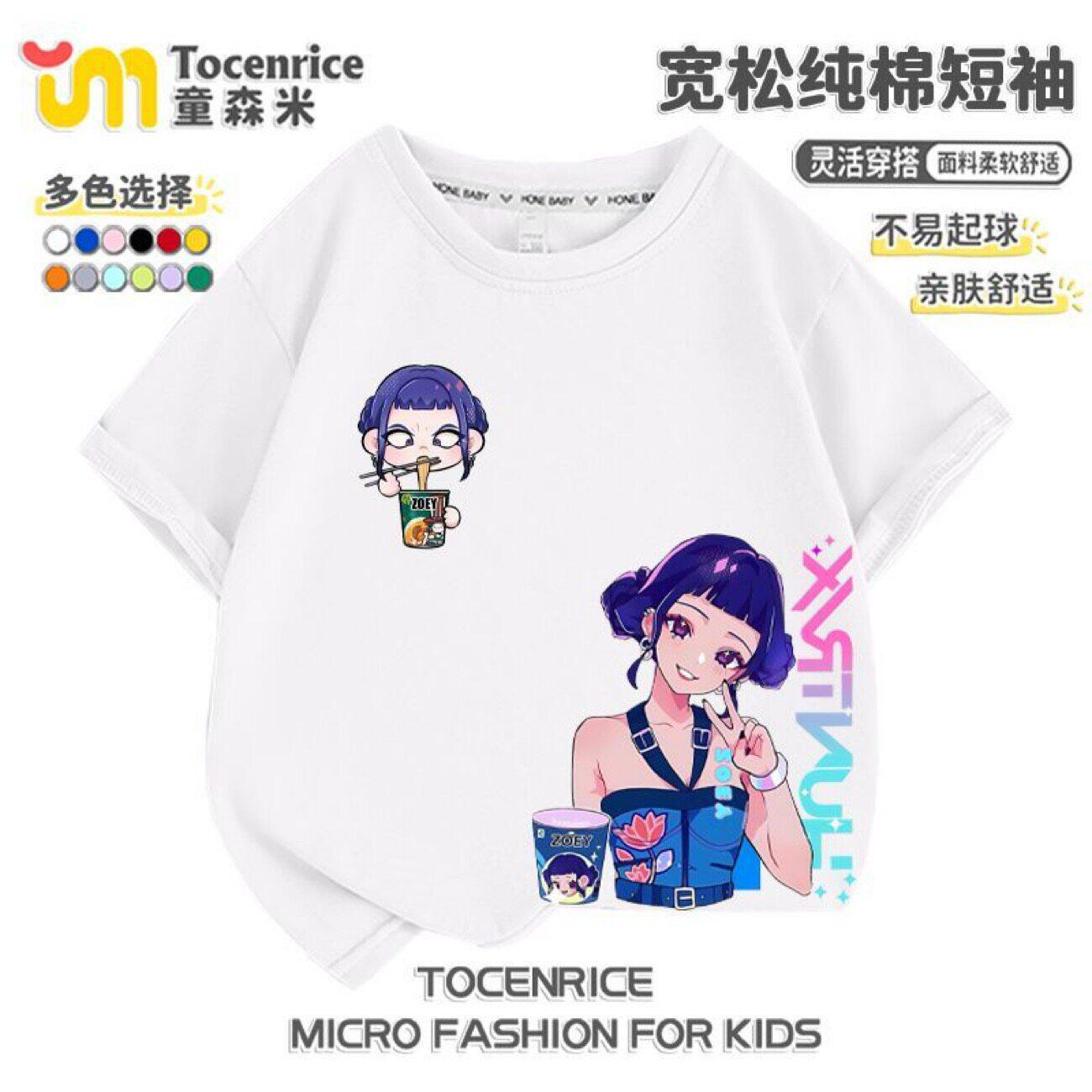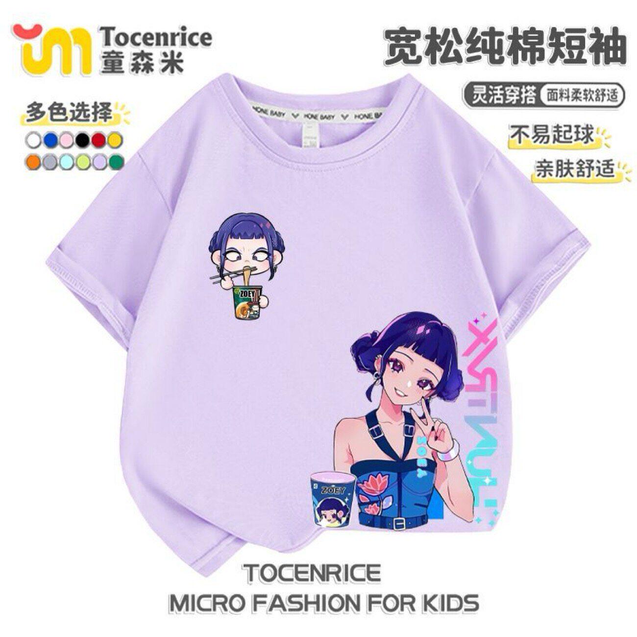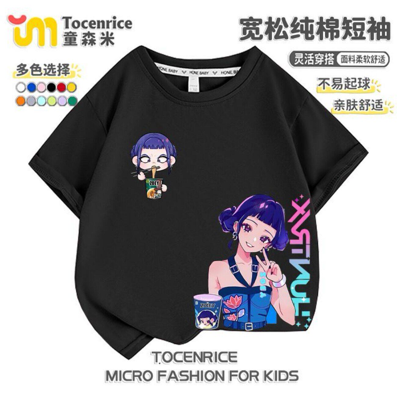 kpop猎魔女团儿童纯棉Rumi鲁米Mila米拉Zoey佐伊女童宽松休闲短袖