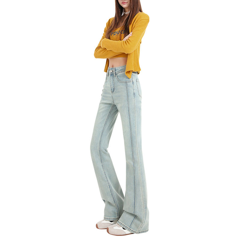 显瘦弹力马蹄裤 2508黑色微喇牛仔裤 女 高腰辣妹修身 美式 女春季 新款