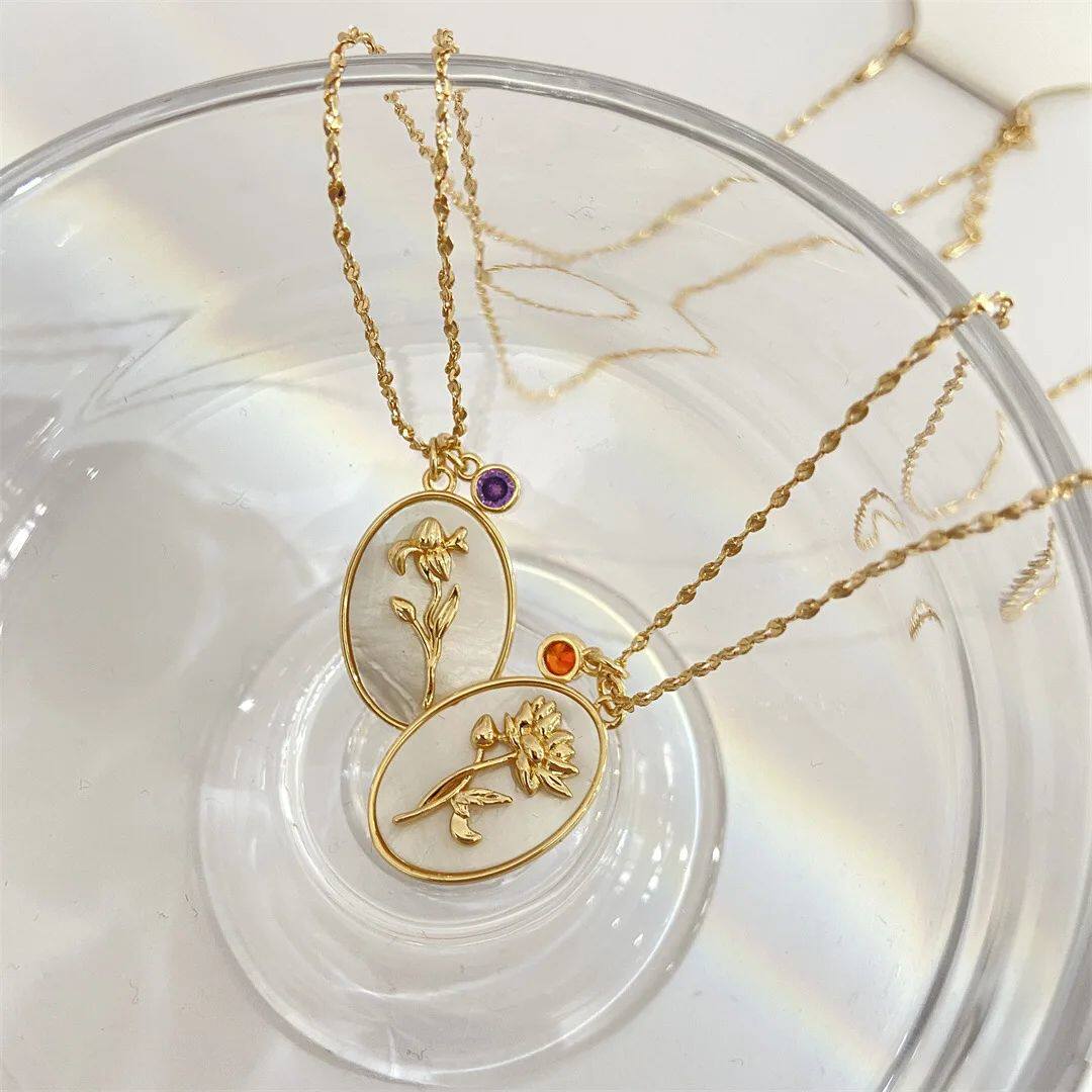 Necklace Charm Birthstone Women Flower Month Birth for由