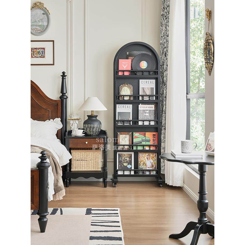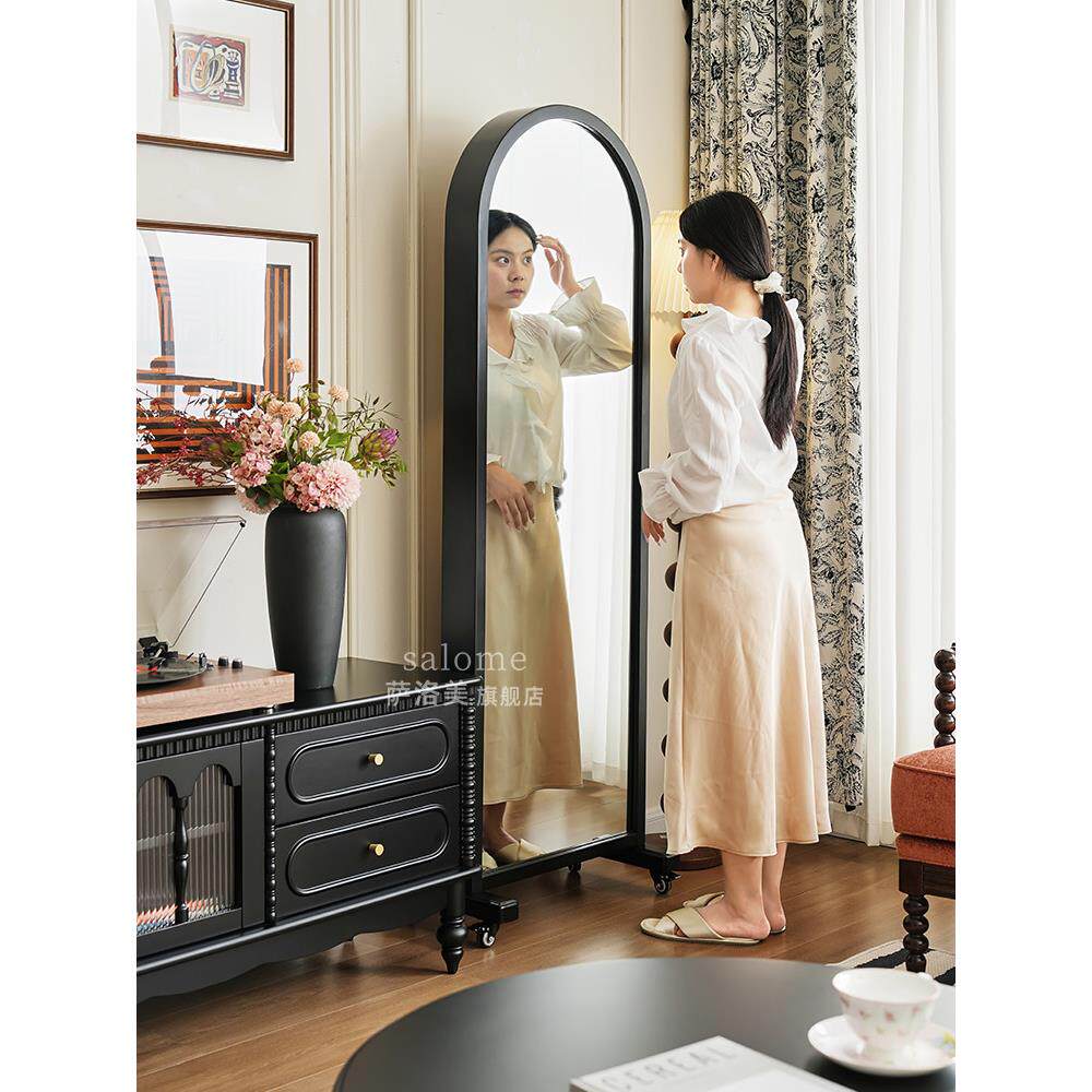 实木可旋转移动书架落地置物架多层收纳架客厅靠墙全身穿衣镜 法式