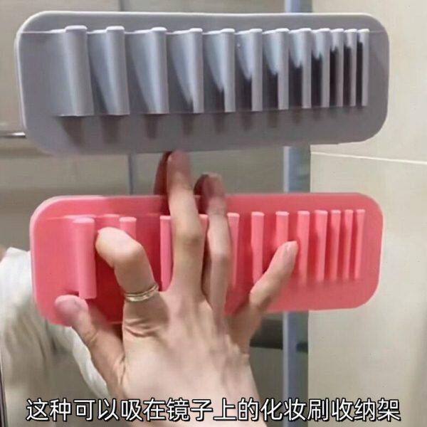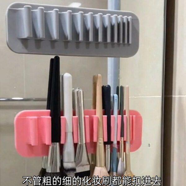 又是一神器呀 硅胶化妆刷子收纳架便携牙刷晾干架晾晒挂架 吸壁式