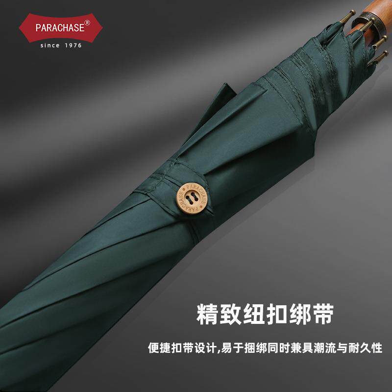 Para伞cha246se实木直柄手商动复古双人雨伞加大长柄务鸭子头型男由