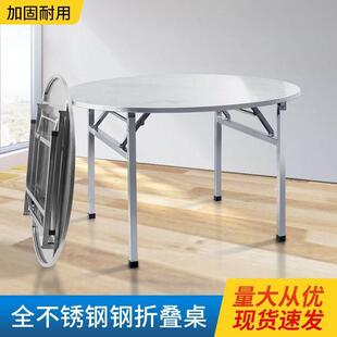 特厚不锈钢带转盘商用吃饭家用厨房院子折叠大排档酒席大圆桌餐桌