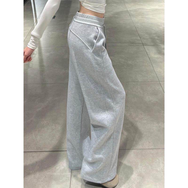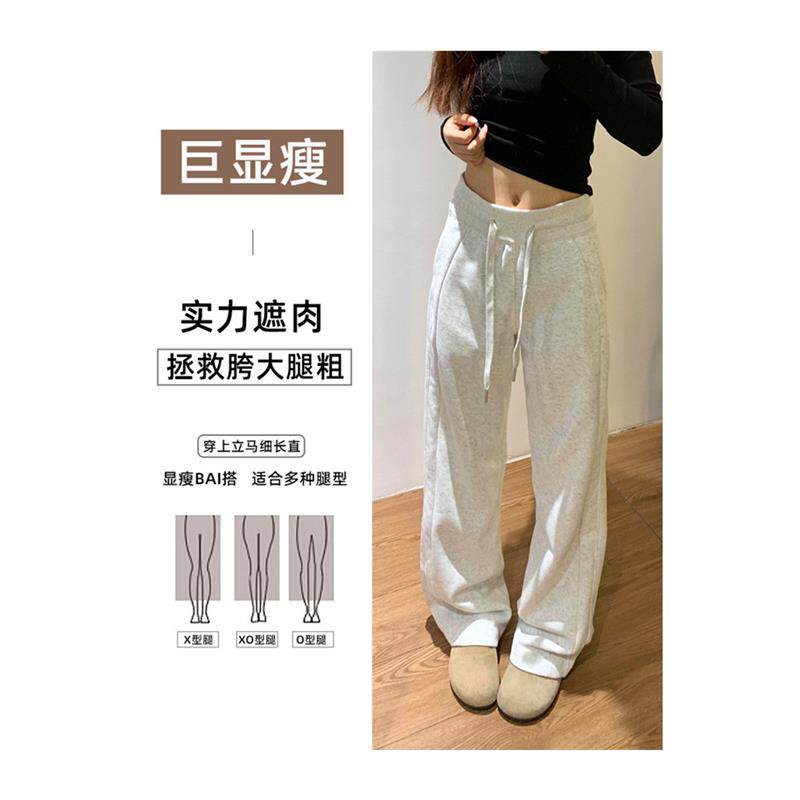 asomesome美式 女灰色修身 休闲松弛运动裤 子 黑色微喇直筒低腰卫裤