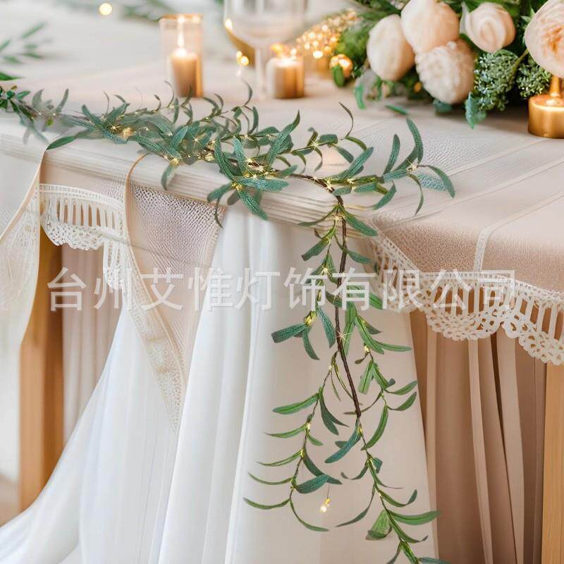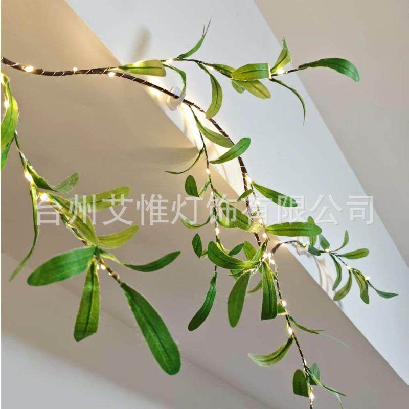 新品 饰灯 橄榄叶藤条灯LED仿真橄榄树灯串彩灯圣诞婚庆藤编枝条装