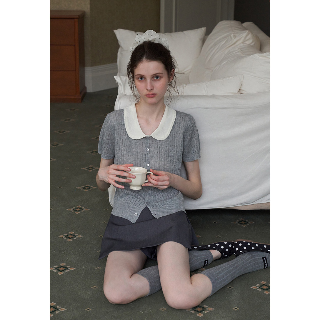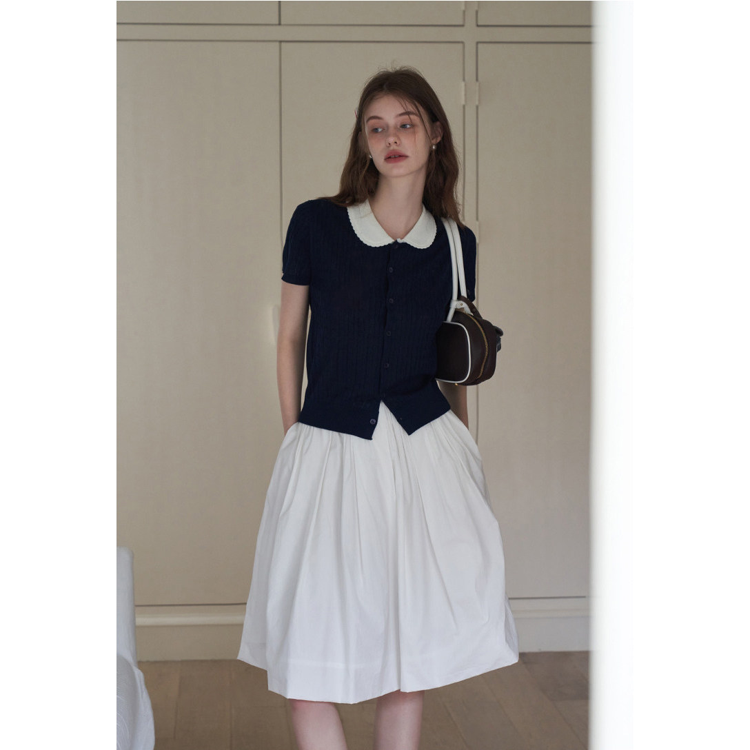 miu系学院风甜美冰丝短袖 女夏季 法式 高智感显瘦气质上衣 针织开衫由