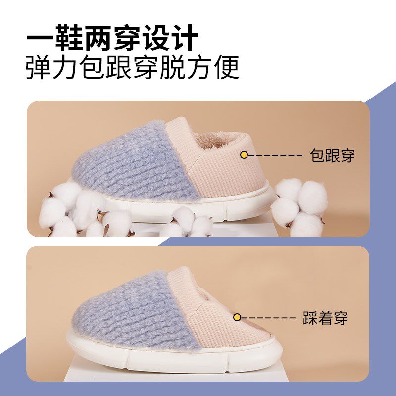 室内厚底半包跟棉鞋 棉拖鞋 男冬季 家居保暖居家防滑家用大码 女 男士