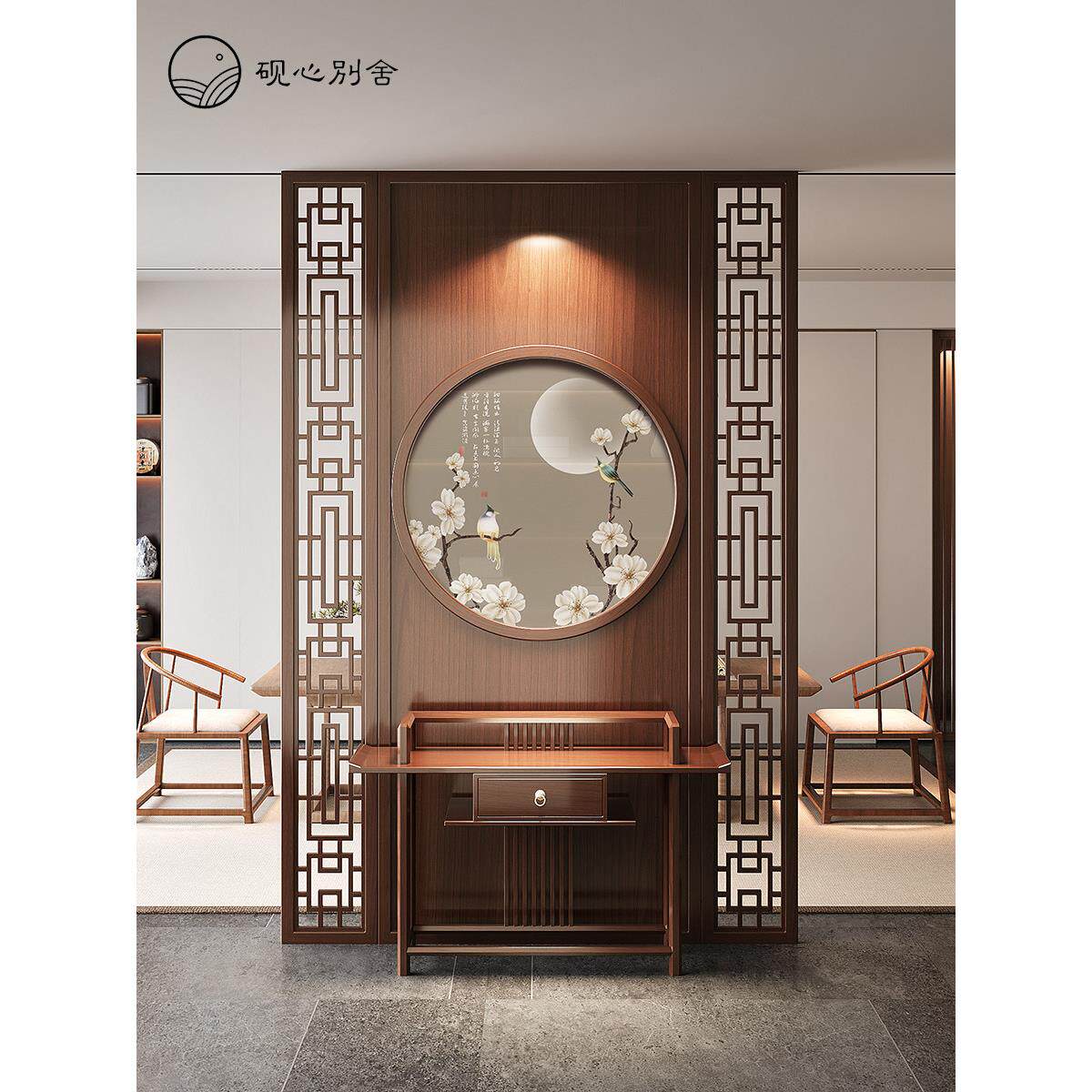 新中式 饰座屏 屏风隔断墙客厅实木入户玄关柜子现代简约镂空格栅装